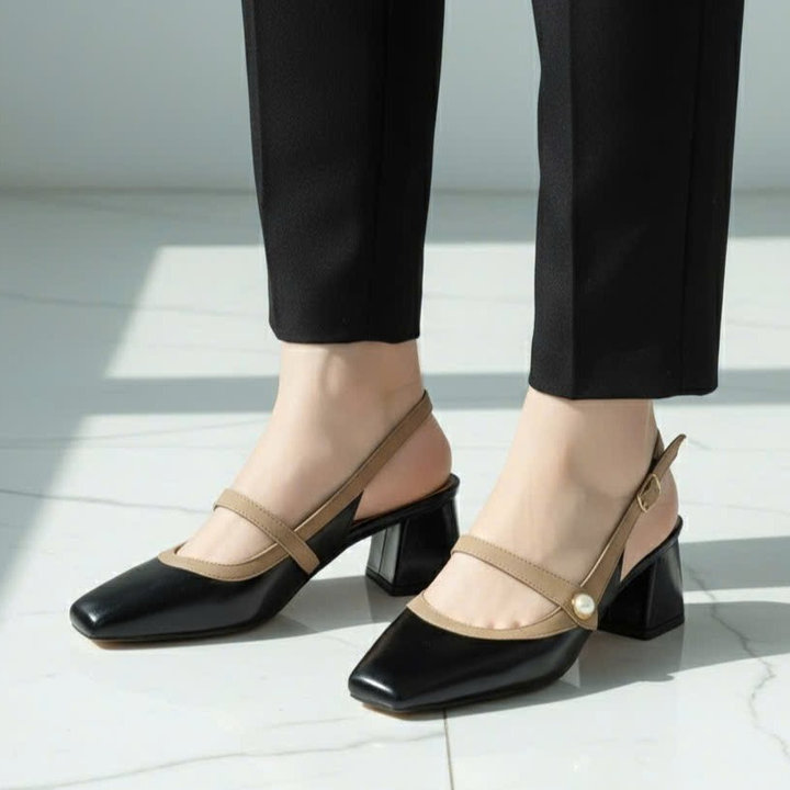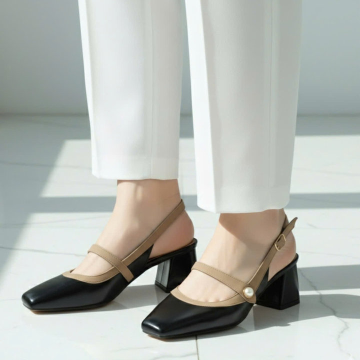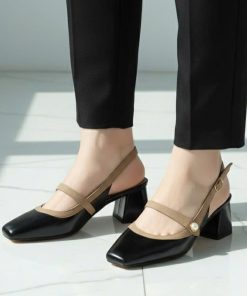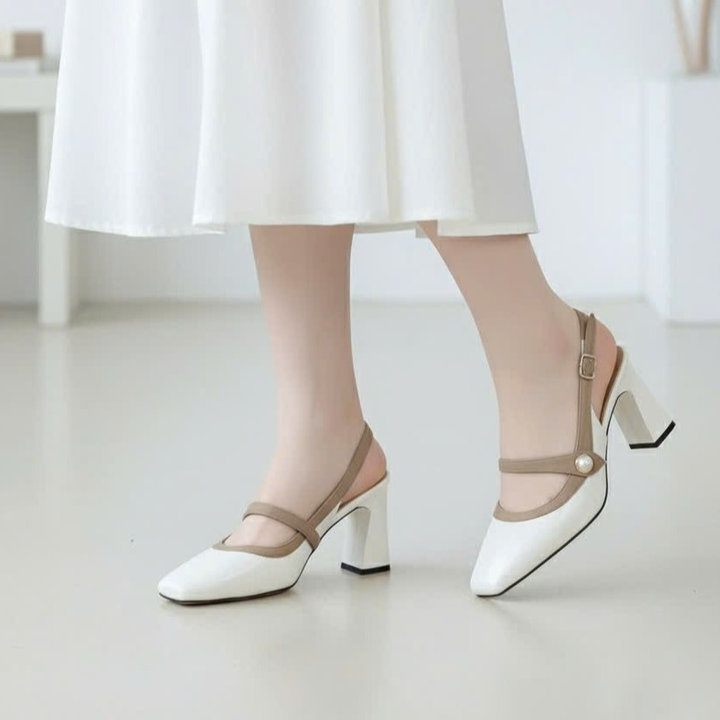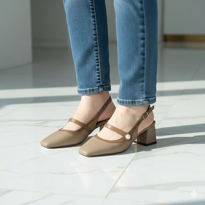 Tên sản phẩm: Sandal cao gót nữ mũi vuông mix nút ngọc sang trọng
