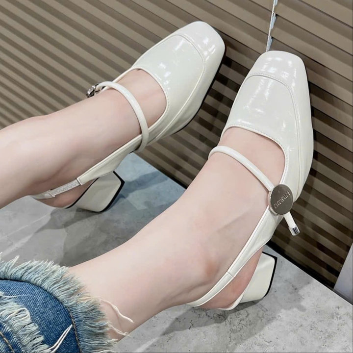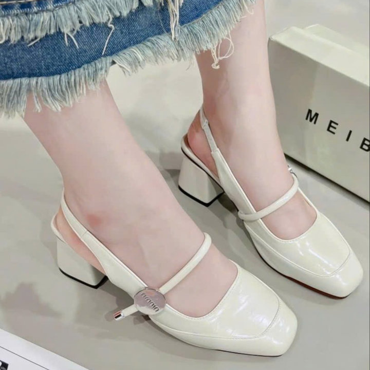 Tên sản phẩm: Sandal cao gót quai ngang mũi vuông xinh xắn – Moon shop