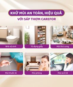 Sáp thơm Carefor với công thức tiên tiến có tác dụng tạo mùi hương giúp khử mùi hôi, làm thơm phòng: như toilet, nhà tắm, nhà bếp, xe hơi, phòng khách, phòng ngủ…