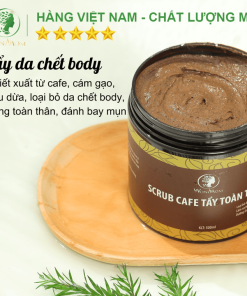 - Scrub cafe tẩy toàn thân Wonmom là 1 trong số những sản phẩm bán chạy nhất với nguyên liệu tự nhiên, an toàn cho sức khỏe: Cám gạo, Café, Dầu dừa, Bột nghệ.