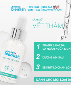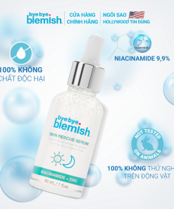 Tinh chất Bye Bye Blemish Skin Rescue Serum 9,9% Niacinamide kết hợp với Kẽm là một công thức vàng để kiểm soát dầu nhờn, se khít lỗ chân lông và cải thiện kết cấu da.
