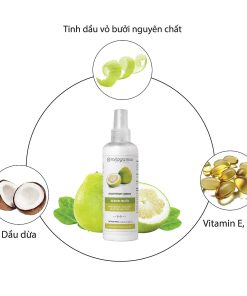 - Thành phần: Tinh dầu bưởi, kết hợp cùng dầu dừa tinh khiết, vitamin E và nước