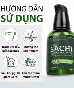 - Serum Sachi Phục Hồi Tóc Vitamin E Milaganics chính là sản phẩm không thể thiếu của các cô nàng hiện đại không ngại thay đổi phong cách thông qua mái tóc. Với dầu Sachi 100% nguyên chất, Serum Sachi bổ sung tỉ lệ vàng Omega 3-6-9 giúp tạo lớp màng bảo vệ tóc đến 98% khỏi nhiệt độ cao khi sấy, uốn, duỗi,… và hoá chất tạo kiểu. Bên cạnh đó, Serum còn tăng cường các “thần dược" chống oxy hóa như dầu Dừa, dầu Argan, dầu Hạnh Nhân kết hợp với hàm lượng lớn vitamin E giúp tóc chắc khỏe, giảm khô xơ và mềm mượt tức thì chỉ sau 1 lần sử dụng.