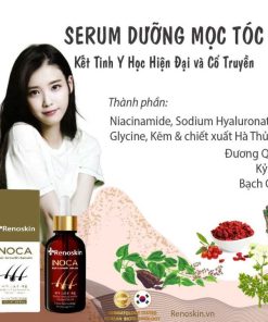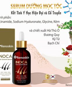 Serum giảm rụng tóc Inoca Renoskin nhờ kết hợp giữa những hoạt chất hiện đại như HA, Glycine, B3, Kẽm, Tinh dầu … với tinh hoa y học cổ truyền bổ khí huyết và Can Thận Hà Thủ Ô, Đương Quy, Bạch Chỉ, Kỷ Tử…