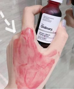 – Sau khi làm sạch và khô da, apply tinh chất The Ordinary AHA 30% + BHA 2% Peeling Solution lên đều cả mặt, massage nhẹ nhàng cho đến khi serum chuyển từ màu đỏ sang tím tím trong vòng 5 – 10 phút (không để quá 10 phút), rồi rửa lại với nước ấm.