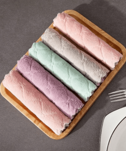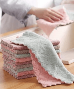 - Khăn mềm mịn, thấm nước siêu tốt và vắt kiệt siêu nhanh khô, dùng để lau bát đũa, lau tay, lau bàn, lau bếp…