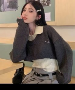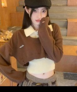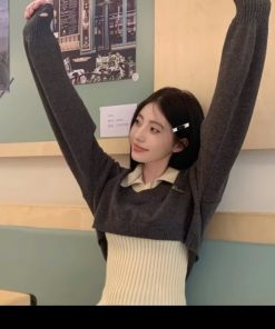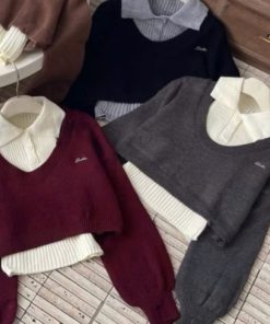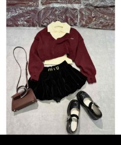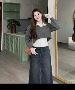 – Kiểu dáng: set len nữ 2 món- áo len tiểu thư phối cổ polo siêu dễ thương