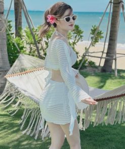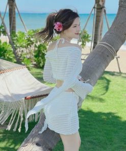 SET 3 MÓN ĐI BIỂN ÁO CÓ MÚT, CHÂN VÁY THUN REN CÓ LÓT BH115Y- SAM FREESIZE < 53KG