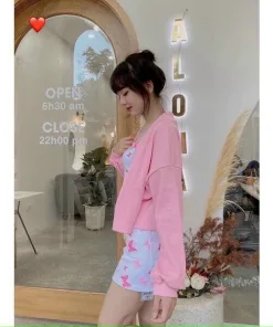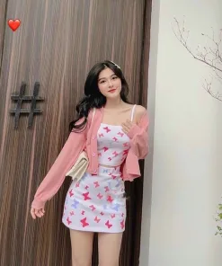 - Set bao gồm áo 2 dây dáng croptop kèm chân váy, áo khoác ngoài tay dài mềm mại, thoáng mát