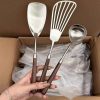 Cán bằng nhựa vân gỗ có độ cong và mịn, cầm chắc tay, vừa tay, dễ dàng nấu nướng