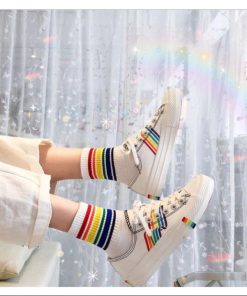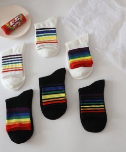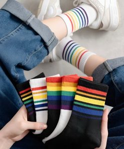 SET 5 ĐÔI TẤT CAO CỔ HỌA TIẾT SỌC CẦU VỒNG NĂNG ĐỘNG, TRẺ TRUNG