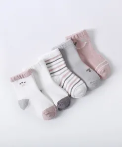 – Tất, vớ trẻ em với chất liệu trên 80% cotton mềm mại, thoáng mát, thấm hút mồ hôi, không gây kích ứng da cho bé yêu.