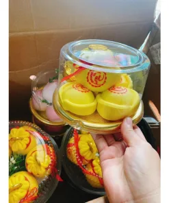 – Mô tả: Hộp có đế tròn, màu vàng,