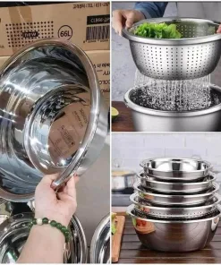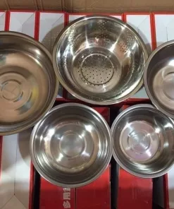 🌟 Bộ 5 thau và rổ inox với các cỡ từ to đến nhỏ