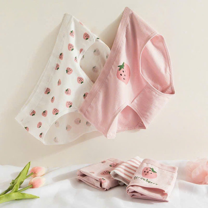 SET 5 QUẦN LÓT DÂU HỒNG SIÊU DỄ THƯƠNG TỪ 40-60KG DÀNH CHO NỮ