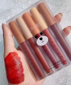 - Tên sản phẩm: Set 5 Thỏi Son Kem Xinh Xắn, Chất Lì Lâu Trôi, Chống Thấm Nước Mềm Mịn SK-PG275 Gấu Đỏ – Silkygirl