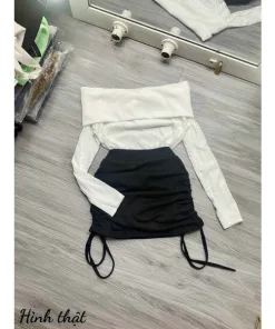 - Màu sắc: Áo trắng + chân váy đen, áo nude + chân váy đen, áo trắng + chân váy nude