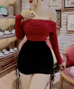 - Tên sản phẩm: Set Áo Bẹt Vai Kèm Chân Váy Rút – Lê Phương Boutique