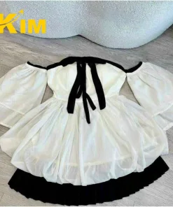 Tên sản phẩm: SET ÁO BẸT VAI PHỐI CHÂN VÁY ĐEN – KIM