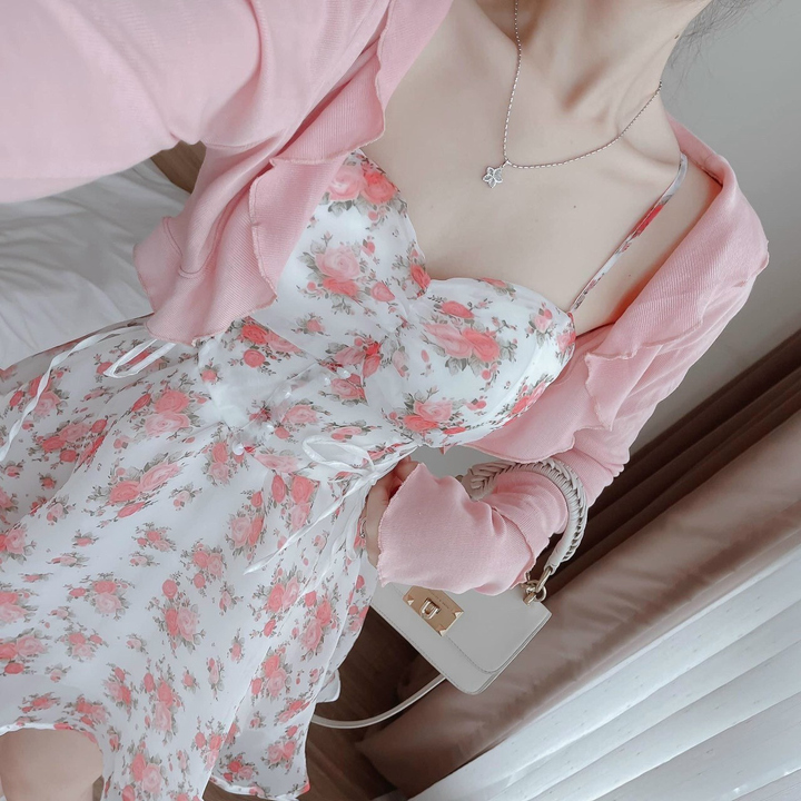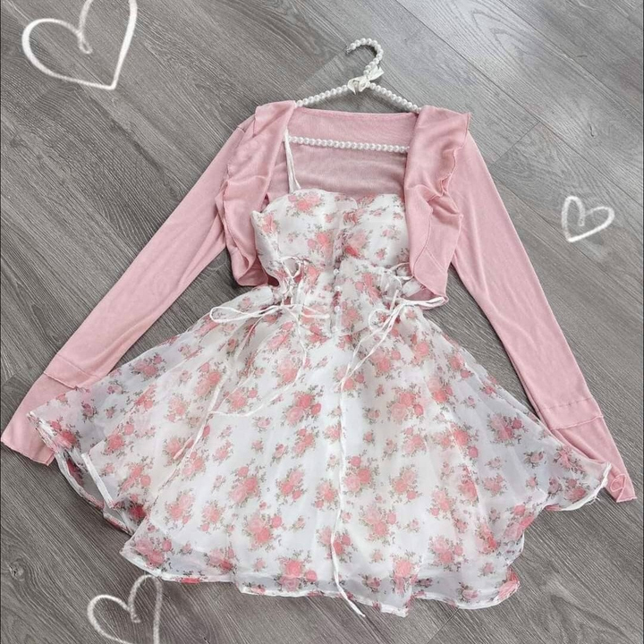 Tên sản phẩm: Set áo có kèm đầm voan hoa đính cườm V196 – HAKA MÂY