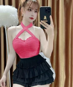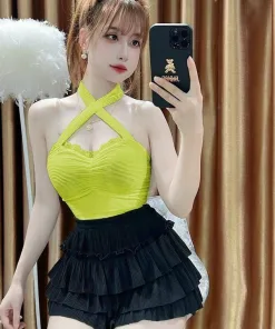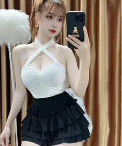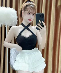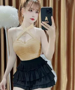 - Set Áo Cổ Yếm Kèm Quần 3 Tầng với kiểu dáng sexy, quyến rũ, có chút nhẹ nhàng, tạo điểm nhấn cho người mặc.
