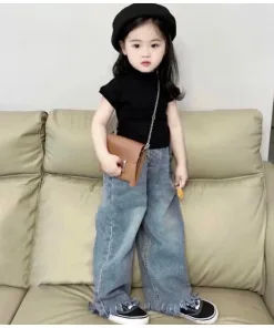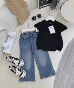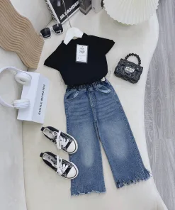 Tên sản phẩm: SET ÁO CỌC MÀU ĐEN MIX QUẦN BÒ ỐNG SUÔNG SIÊU ĐẸP CHO BÉ GÁI PT11 – BE YOURSELF