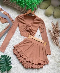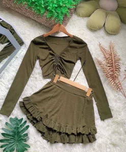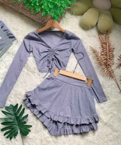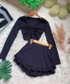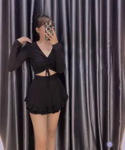 - Tên sản phẩm: Set Áo Croptop Tay Dài Kèm Chân Váy Xòe – Lê Phương Boutique