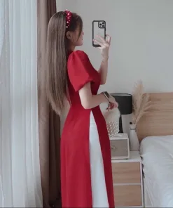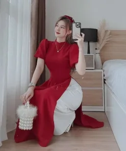 SET ÁO DÀI CÁCH TÂN CỔ TÀU TAY PHỒNG PHỐI QUẦN LỤA SH1156 – SAM FREESIZE < 53KG