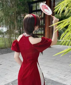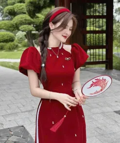 SET ÁO DÀI CÁCH TÂN NHUNG CỔ YẾM ĐÍNH PHỤ KIỆN BH1255-NANA FREESIZE < 55KG