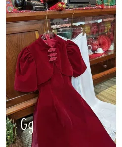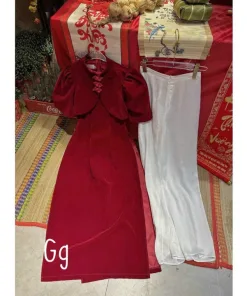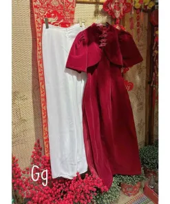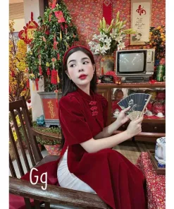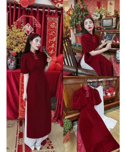 SET ÁO DÀI NHUNG CÁCH TÂN CHOÀNG VAI NÚT CỔ TÀU TAY PHỒNG SH1251-SAM FREESIZE < 55KG