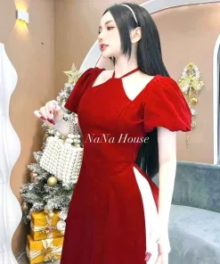 - Tên sản phẩm: Set Áo Dài Nhung Đỏ Cổ Yếm – Nana House