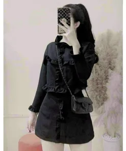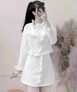 Tên sản phẩm: SET ÁO DÀI TAY NHÚN BÈO + KÈM CHÂN VÁY CHẤT ĐŨI NHĂN CAO CẤP T367