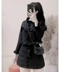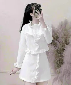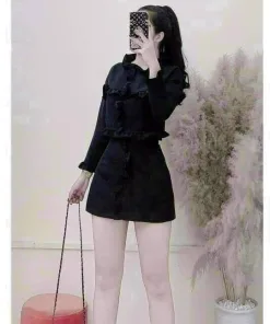 Tên sản phẩm: SET ÁO DÀI TAY NHÚN BÈO + KÈM CHÂN VÁY CHẤT ĐŨI NHĂN CAO CẤP T367