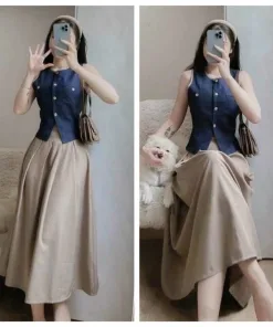 Chất liệu : ÁO DENIM – CHÂN VÁY COTTON LẠNH