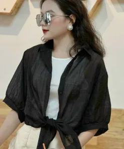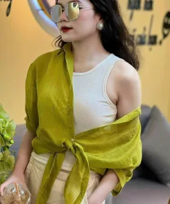 Chất liệu: .khoác sơ mi đũi lụa, áo trong là thun gân