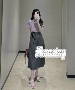 SET ÁO ĐŨI KÈM CHÂN VÁY COTTON LẠNH(CÓ LÓT) BH1005- NANA FREESIZE < 53KG