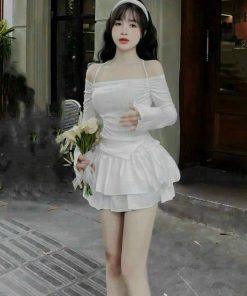 Chất liệu: áo gân + chân váy voan