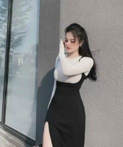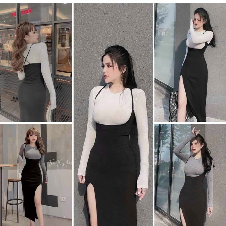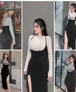 Tên sản phẩm: SET ÁO KÈM ĐẦM XẺ TÀ ÔM EO SANG CHẢNH V369 – HAKA MÂY