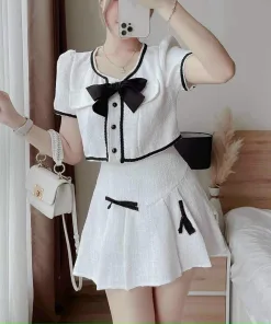 Kiểu dáng: áo phối bơ có viền, nút cài thât, chân váy có lót trong