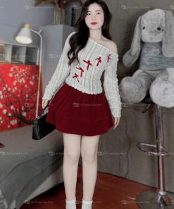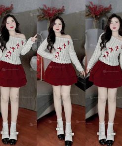 CHẤT LIỆU : ÁO LEN REN – CHÂN VÁY NHUNG CÓ LÓT