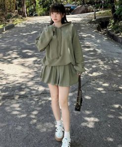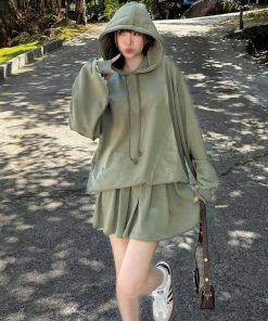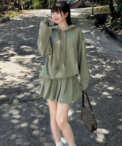 SET ÁO NỈ CÓ NÓN KÈM CHÂN VÁY XẾP LY(CÓ LÓT QUẦN TRONG) HB80J – NANA FREESIZE < 53KG
