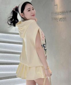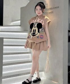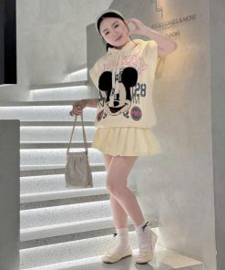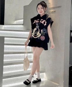 SET ÁO NỈ IN MICKEY CÓ NÓN PHỐI CHÂN VÁY NỈ XẾP LY MTB100- NANA FREESIZE< 53KG