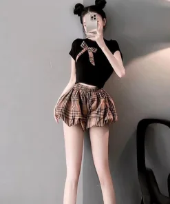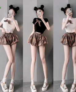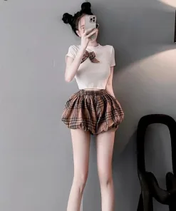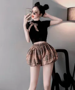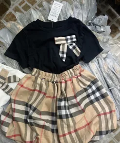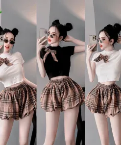 Set đồ gồm 1 áo thun nơ thun borip kèm 1 quâng ống bí caro chất kate