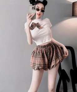 Tên sản phẩm:SET ÁO NƠ KÈM QUẦN CARO BÍ – LÊ PHƯƠNG BOUTIQUE