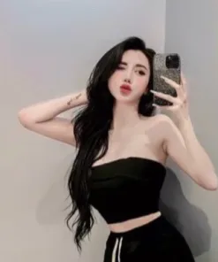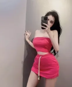 Sản phẩm gồm áo 2 dây dáng croptop ôm body kèm chân váy có quần trong