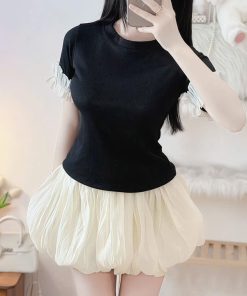 Chất vải mềm mại, thoáng mát, thấm hút mồ hôi tốt, co giãn giúp ôm dáng cực xinh.