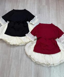 Chất liệu: áo tăm lạnh phối tơ + váy tơ lụa 2 lớp