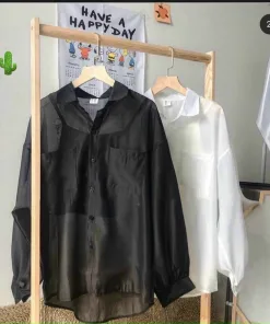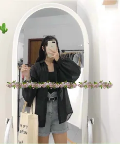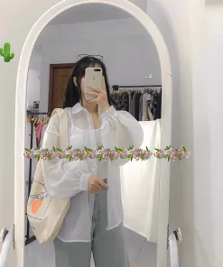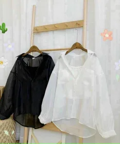 - Chất liệu: áo sơ mi vải voan, áo thun borip bên trong