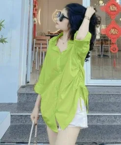 Tên sản phẩm: SET ÁO SƠ MI TAY DÀI FORM RỘNG KÈM QUẦN SHORT T951