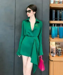 Tên sản phẩm: SET ÁO SƠ MI TAY DÀI KÈM CHÂN VÁY CHỮ A CHẤT TUYẾT NHUNG M934